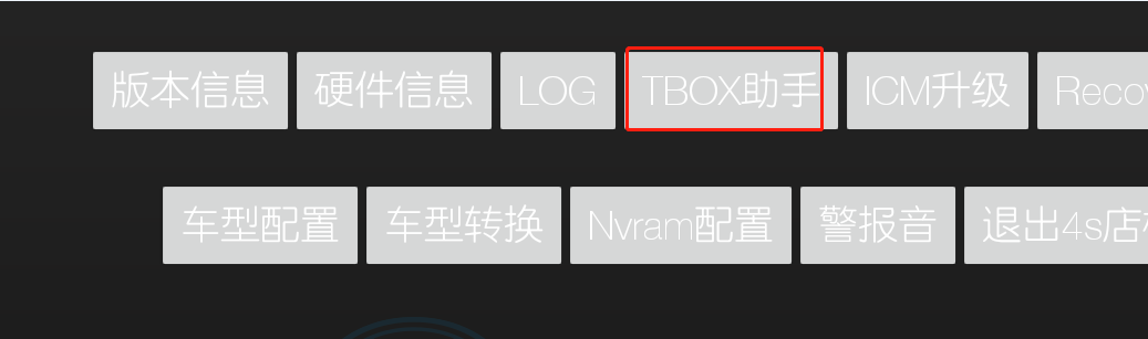 在工厂模式,按“Tbox助手“按钮,进入 tbox 界面。如下图红色按钮。