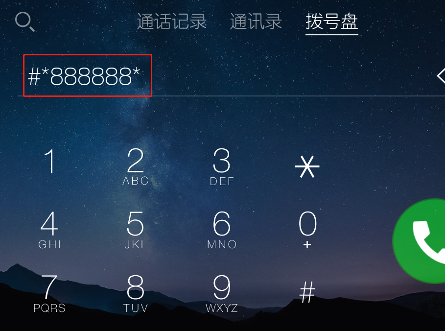 3.按方向盘电话键,进入车机拨号界面(打电话的界面)输入 #*888888* ,会进入工厂模式。